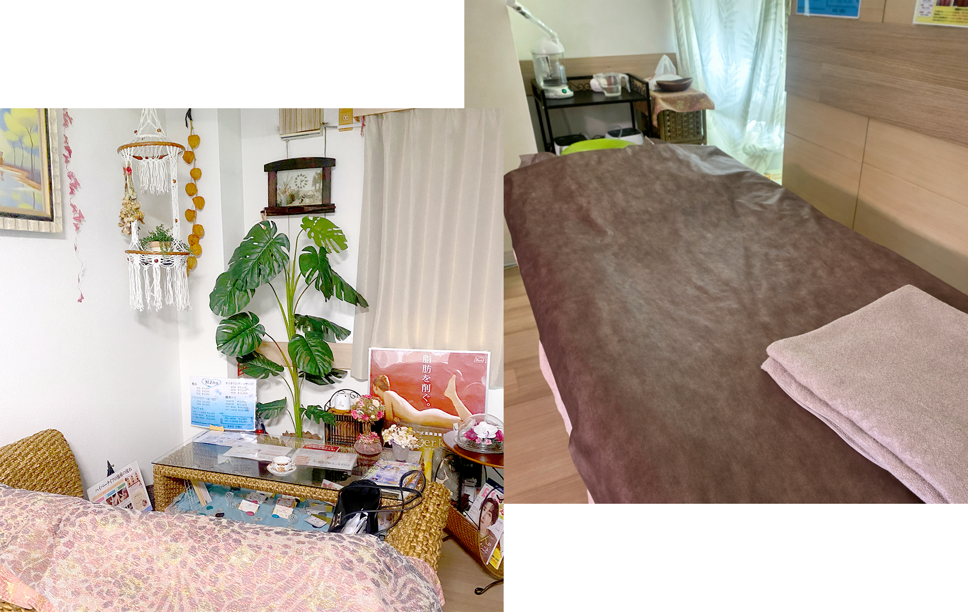 整体・リフレクソロジー(足つぼ)・フェイシャル・オイルリンパマッサージ・痩身など幅広く対応しています。